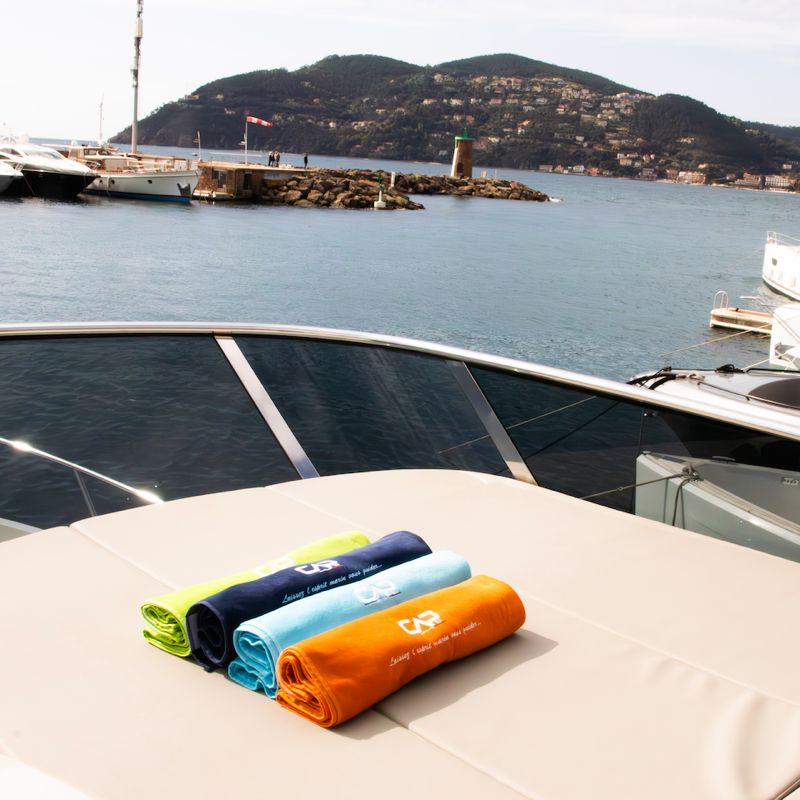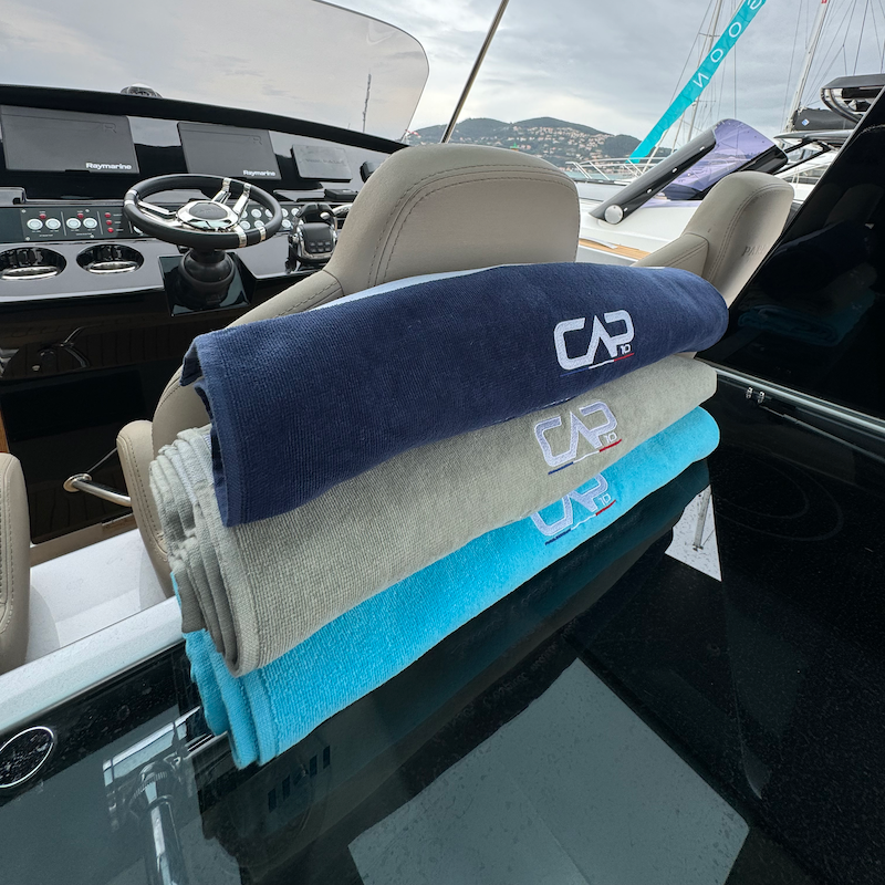 Quoi de plus plaisant que d'avoir, sur son bateau, des draps de plages brodées au nom de celui-ci ?